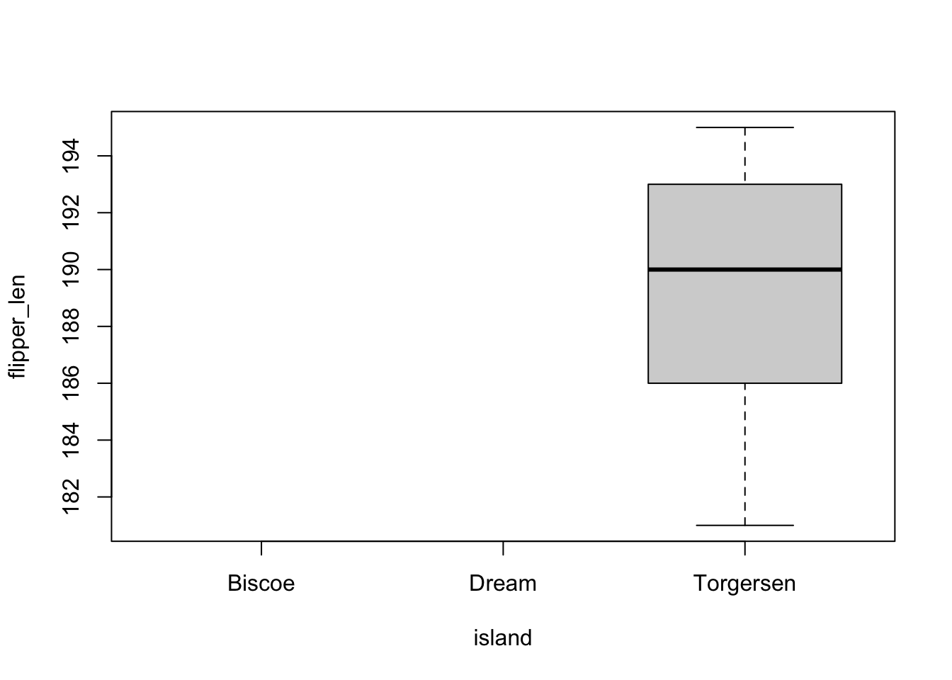 plot(flipper_len ~ island, penguins_subset)