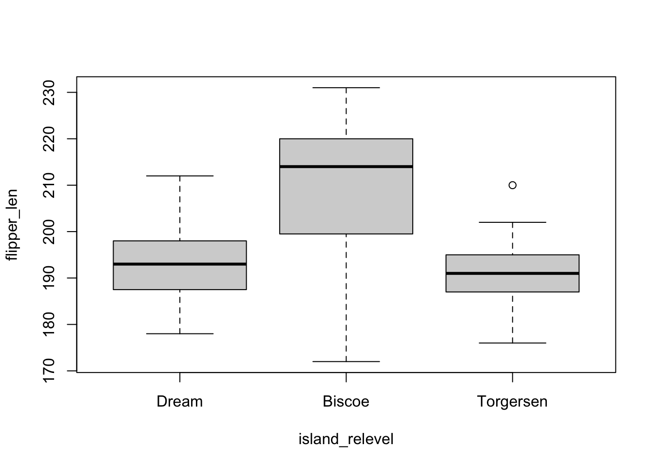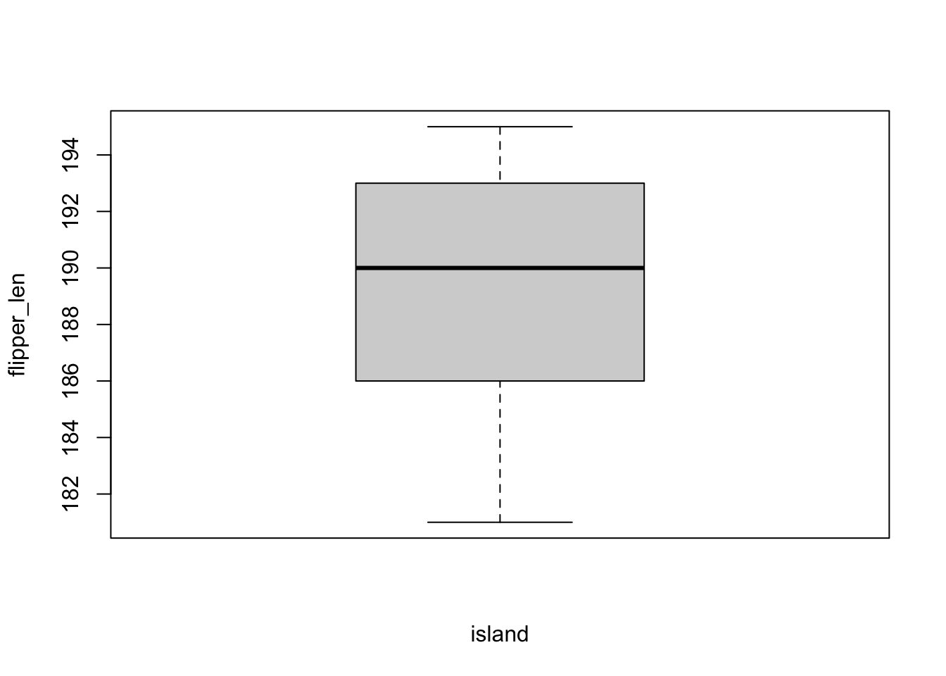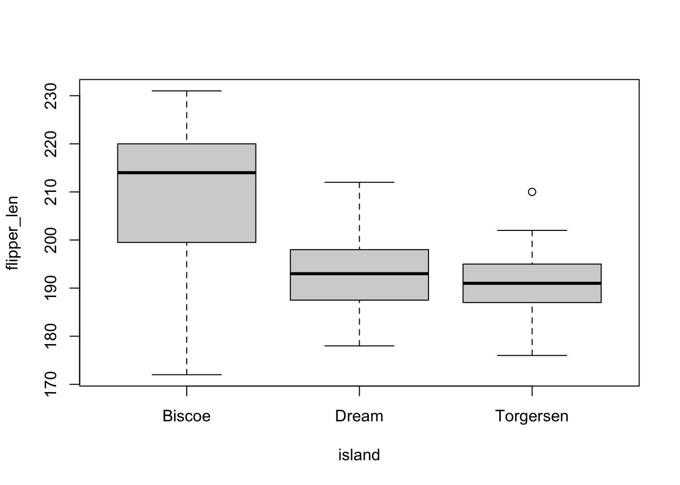 plot(flipper_len ~ island, penguins_subset)