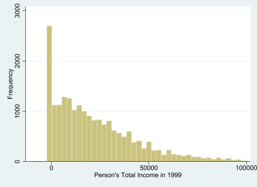 Run your first_steps_exercises do file that loads 2000_acs_sample_harm.dta and then look at it in the data browser. What issues do you notice? Be sure to look closely at inctot.
